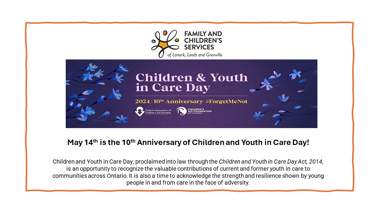 Each year, on May 14, the Ontario Association of Children’s Aid Societies (OACAS) and the Children’s Aid Foundation of Canada (CAFC) recognize Children and Youth in Care Day alongside children’s aid societies and Indigenous Child and Family Well-Being Agencies (child welfare agencies). Proclaimed into law through the Children and Youth in Care Day Act, 2014, it is a day to recognize the valuable contributions of current and former youth in care to communities across Ontario. It is also a time to acknowledge the strength and resilience shown by these young people in the face of adversity.